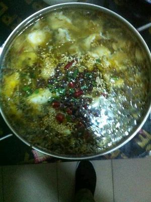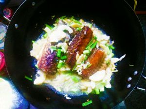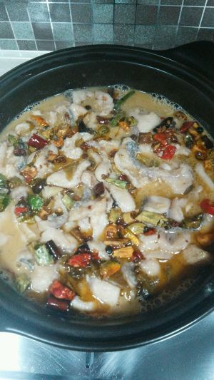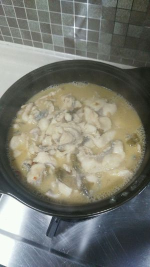 慢慢的把鱼肉放进滚开的汤里面不要抖动太大!