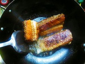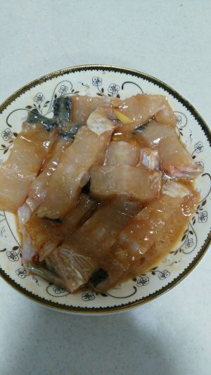 No.1.倒入适量的食油待油加热后放入切好的鱼块撒入适量的食盐煎至两面金黄后放入碟子中备用