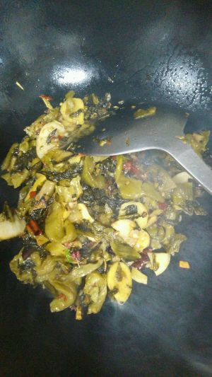 No.2.洗干净锅后倒入切好的酸菜翻炒至水干后加入适量食盐继续翻炒至好后放入碟子中备用