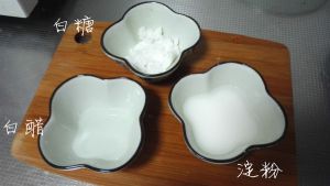土豆淀粉用水泡透,大约需要半小时,倒去上边的清水备用