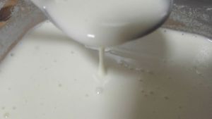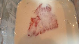 在里脊肉腌制的时候我们拿出来提前几个小时就用水泡上的土豆淀粉(我每次是早上起来就水将淀粉泡上,到晚上的时候做),滤去淀粉表面上的那层清水,剩下的就是准备用的水淀粉了,看上去是凝固的样子!
