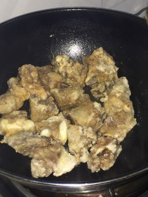 加入适量油,炸肋排至稍微变色。把余油倒掉,洗锅......
