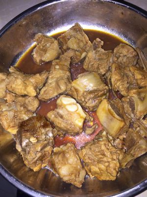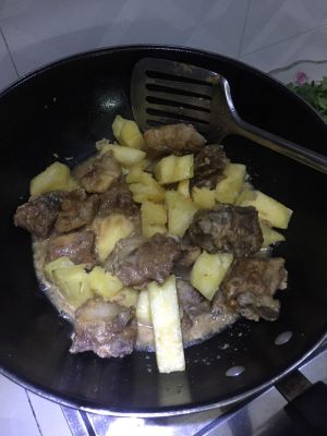 7.这时倒入少量果醋或是白醋,有助于肉酥烂。