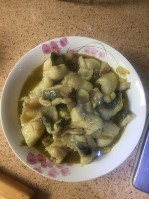 将鱼片儿倒入盆中~可以开吃了(这是一大家人吃的~)