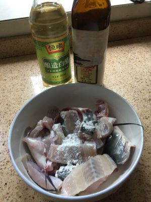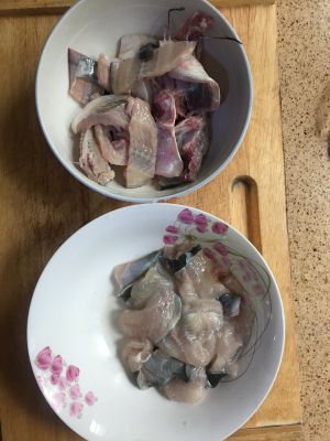鱼头鱼骨洗净沥干水装一盘,鱼片洗净沥干水装一盘