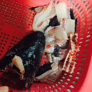 鱼头鱼骨洗净血污备用。最好多洗几遍这是后来鱼汤奶白的关键。