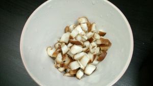 将肉剁碎,连同两个香菇一起剁碎,生姜若干一起剁碎,外加掏豆腐洞剩下来的豆腐。加上食盐,白胡椒粉,蚝油,香油,一个鸡蛋,生粉一起搅拌,放生粉目的让肉定型,到时候煎的时候肉也不会散,生粉用量,大概就是让肉定型,太多了吃的时候口感也不好,看图片的样子就差不多了,都是经验,哈哈