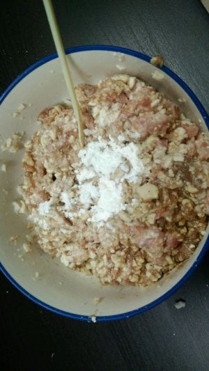 肉馅加入调味料,淀粉,胡椒,五香,盐