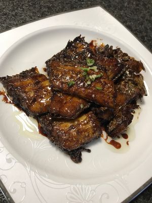 小火把煎好的带鱼放锅里,放上剩下的一半葱姜蒜,锅边淋料酒,放糖,醋,生抽,老抽,蚝油。