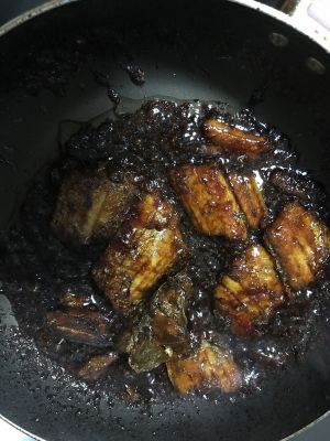 另起油锅,锅内放一点点油,放入冰糖,翻炒一下然后倒入酱油,香醋搅均匀后倒入带鱼