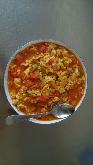 再加少许油放入番茄加入盐、鸡精、麻辣鲜、辣椒粉翻炒至出汁,加入鸡蛋翻炒,加入少量清水继续翻炒片刻,盛出即可