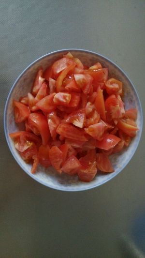 西红柿洗净切块儿,鸡蛋磕入碗中加入少许盐打散