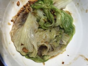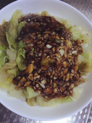 浇在焯好的生菜上,拌一拌就大功告成啦!蒜香扑鼻还有蚝油的鲜美,很好吃呢!