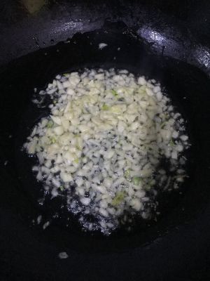 锅中加少许油,炒香蒜末。