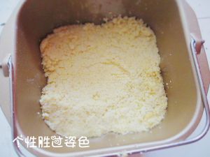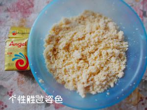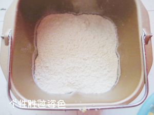 再放一层面粉,中间弄个窝,放入白糖、酵母粉