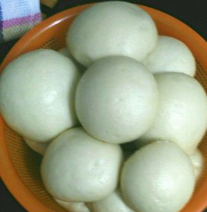 酵母用温水冲下 静放十分钟 面粉糖盐放在一起 用酵母水和面团做到不沾手不沾盆 的光滑面团 放在盆里盖保鲜膜发酵一宿 第二天早上 揉面排气 之后分份 揉成一个个小剂子 二次发酵大概十五分钟 可以放在加热后断电的锅里发酵因为温度高 发酵会块一些 入锅水开后十五分钟 断电焖5分钟开锅 就好了 高筋面粉馒头很筋道好吃放了盐 有滋味
