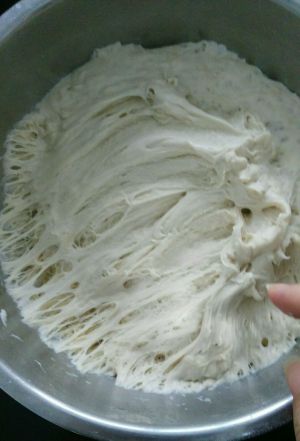放温暖处发酵,体积膨胀至原来两倍, 拨开呈蜂窝状。