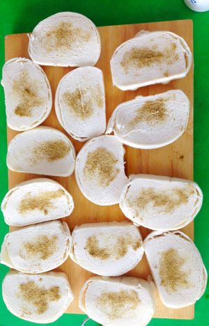 做好的孜然馒头片味道酥酥脆脆的,在配上一杯原味豆浆,那心情真是美美哒