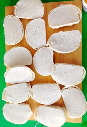 把平底锅预热,放入烘烤布(防止粘锅),锅热改成小火,把一个个小馒头放入锅中,盖盖子,大约15分钟,就可以烤好啦。