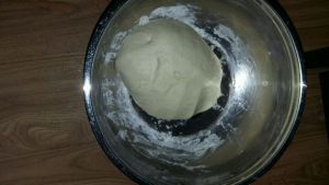 2.用适量温水溶化酵母,掺到250g面粉中,再加些白糖和粉,揉至光滑即可。而后用盖子盖上发面,大约两个小时,发至两倍大,具体视室内温度而定。