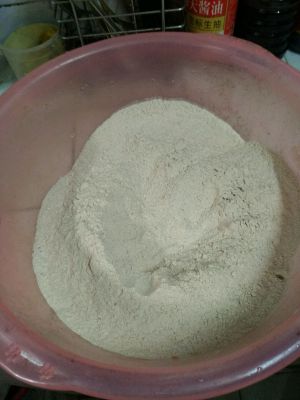 材料准备,面粉,白糖,发酵粉,面粉取出倒在碗里备用