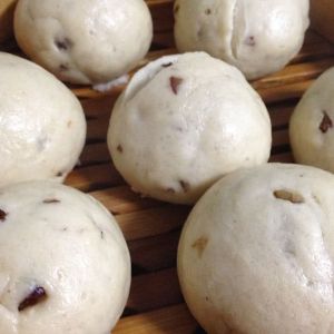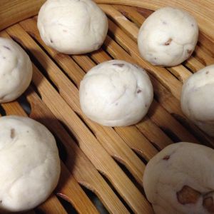 面包机里发酵好之后拿出来,揪成一个个小剂子,捏捏搓圆就可以了,蒸笼底涂点油的话可以防止粘底
