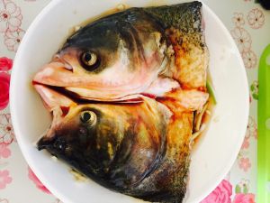 鱼头去鳃洗净,拍上少许盐,胡椒粉,料酒,腌制20分钟
