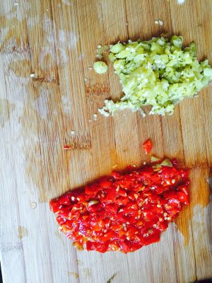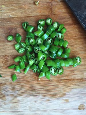 剁好准备好的泡椒 根据个人口味决定放多少量