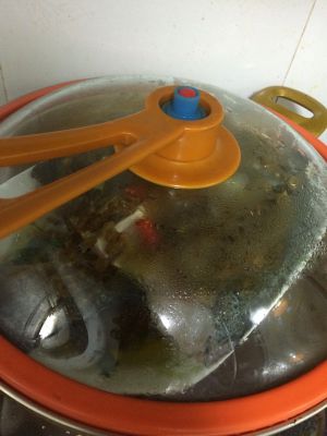 将鱼头置于高压锅中 放入清水 大火蒸十五分钟左右…中途不要掀开…