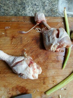 鸡腿洗净控干,划花刀便于入味,然后处理鸡腿,从关节处划开,把鸡肉向上推,这样炸好的成品比较漂亮