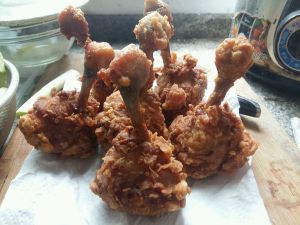 盘子放吸油纸,鸡腿控油后摆盘,完成