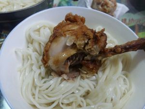 鸡肉咸香入味,外焦里嫩,不比美式韩式炸鸡差,配简单素面,依然是美味一餐哦