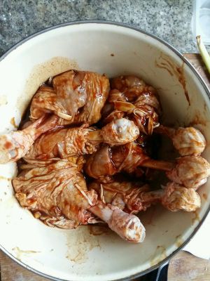 处理好的鸡腿,用藤椒腌料,生抽,蚝油,姜粒腌渍,生抽和蚝油的盐分足够,不用再放。用保鲜膜封起来放冰箱2小时冷藏入味。