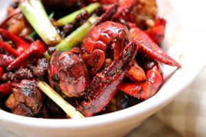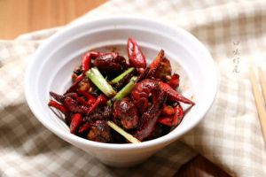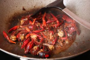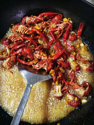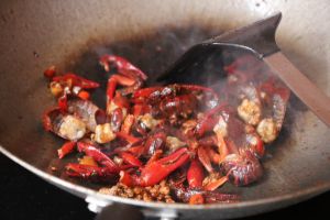 过中油烧热把腌好的龙虾入锅翻炒片刻乘出备用