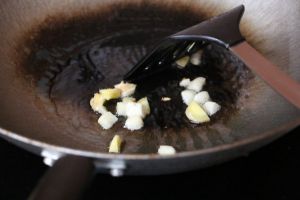 然后放入蒜米跟孜然,胡椒粉,再放适量蚝油