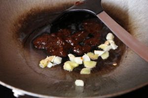 然后放入豆瓣酱(我买的那种袋装无辣椒的豆瓣酱 有辣椒的豆瓣酱都太大份了吃不完)