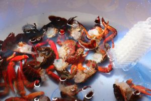 买回来的小龙虾用涮子涮干净特别是虾头和身体接触的部位