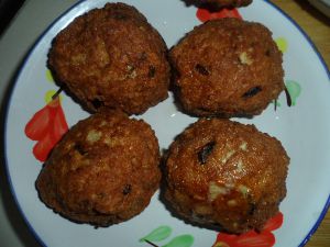 往锅里到半锅油,待油锅烧热将丸子一粒一粒放入不停轻轻的翻,炸至金黄捞出。