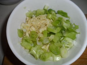 葱切段姜切片几粒花椒泡水,雪梨半个去皮切粒,(可以用马蹄代替,没买到马蹄,秋季吃点雪梨也挺好,主要增加口感)