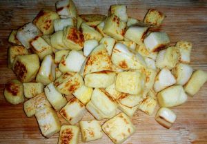 小火,炒至馒头片金黄色,撒入适量的胡椒粉和盐,或者直接撒入椒盐,出锅