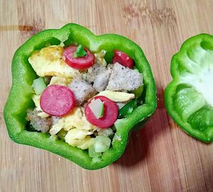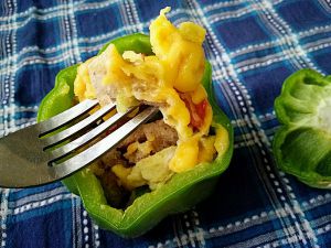 浓浓芝士香的青椒盅焗饭能量早餐。