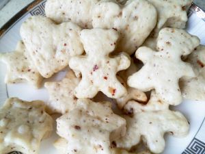 烤盘垫纸,面团搓成一颗一颗小圆球。烤箱175度预热。然后入烤箱烤约10分钟左右。注意上色不要烤过头。