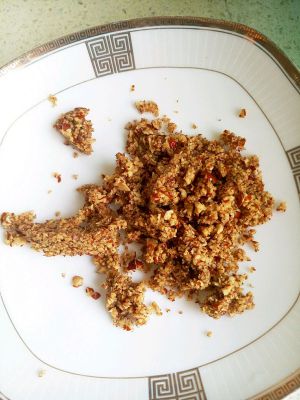 去核的红枣放料理机打碎备用,没有料理机的亲们,可以自己简单剁碎
