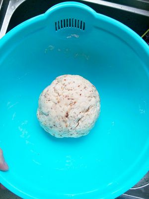 所有材料全部混一起,酌情增减水量,做到手光,面光,盆光。然后静置,自然发酵1个半小时,越久越蓬松。