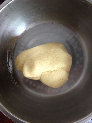 酵母和白糖用接近体温的水溶化,和面成面团,表面抹少许油,用保鲜膜盖好,醒发