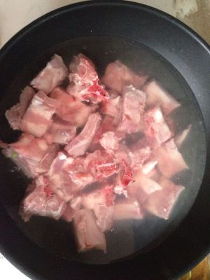 排骨汆水 放大块拍烂了的姜 有的用沸水 我感觉排骨挺脏的 就冷水煮血水出来 (好重呀好重呀~