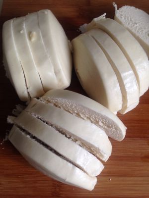 馒头横竖各五刀切成格子状备用,切一半别切段