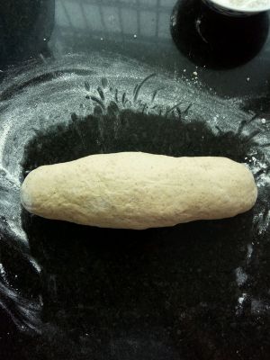 醒发后取2分之一面团,搓成长条。