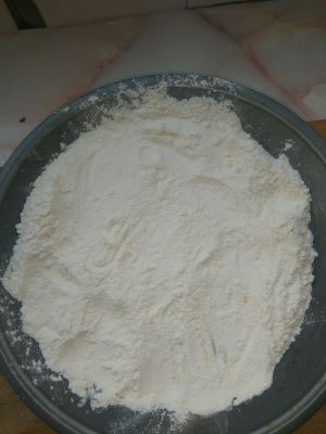 边搅拌边加入淀粉,不要一次性加入淀粉,一点一点加入,还是顺时钟搅拌上劲,比做丸子劲松一些