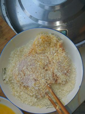 双手摸油,不会沾手,适量大小拍在面包糠里,多拍些